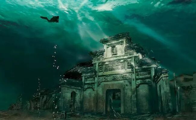 水下古都石城,中国。中国石城县在1959年时为了兴建新安水电站而被水淹没,目前这座古城藏身在现在被1078个美丽的人造岛和湖泊下。