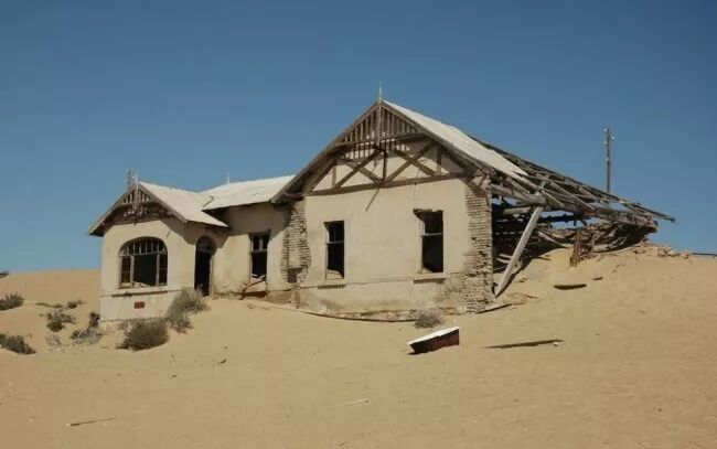 卡曼斯科小镇曾经被发现有钻石,因此吸引了很多人前来,当时盖了大型的房子、学校、医院和体育场,不过钻石很快就被挖完了,居民也就离开了这个城市,这里的水资源非常有限,还常常有沙尘暴,所以大部分的房子都埋在沙里,让这里有着诡异的气氛。