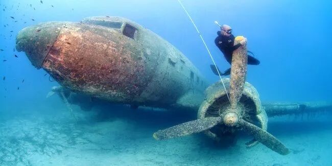 沉没的飞机,土耳其。这架飞机在第二次世界大战中是用来作为土耳其的运输工具,后来在土耳其的小镇卡什的海滨,之后他变成潜水人士的水下游乐场,也有许多鱼虾居住在那里。
