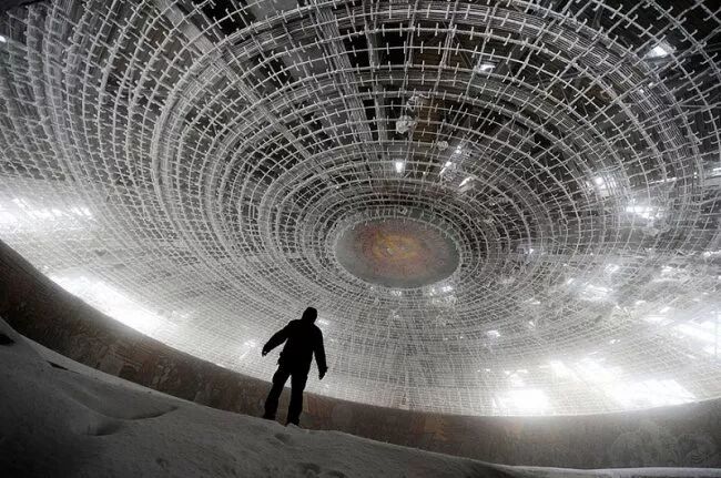 保加利亚总部,保加利亚。保加利亚某党的会议举行地点看起来令人毛骨悚然。这个像一架不明飞行物的建筑在政权垮台后就废弃了。
