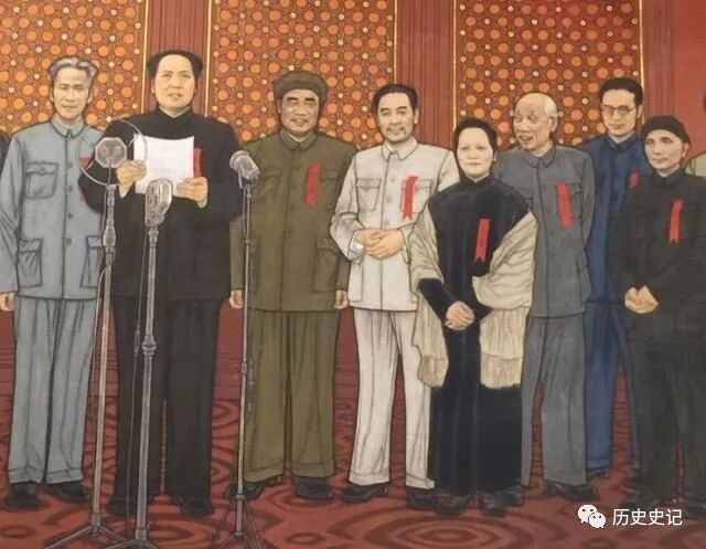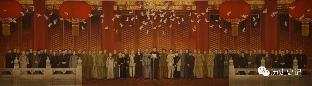 于是,就有了画家经过多方考证,以艺术手法再现历史的作品《新中国诞生》。