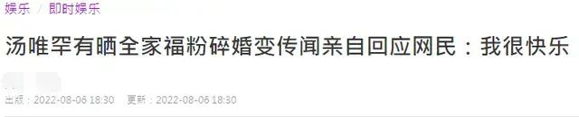 8月6日,有媒体报道了汤唯的近况,称她罕见地晒出全家福大秀恩爱,还戴着婚戒力破离婚传闻,此事引起网友关注。