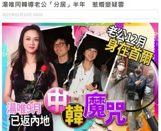 于是,汤唯与金泰勇的婚变传闻闹得沸沸扬扬,还有媒体爆料称两人早已分居半年,汤唯带着女儿回到北京,并且有了离婚的念头。