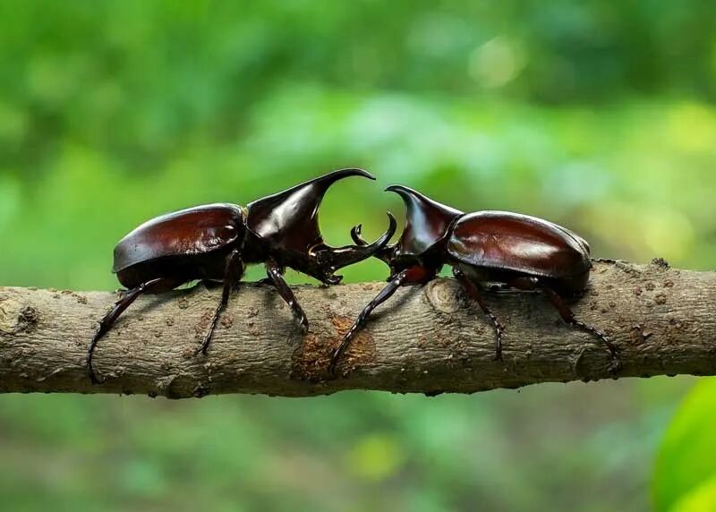 人们会把两只犀牛甲虫放在一根木杆上,让它们互相顶着头进行比赛。