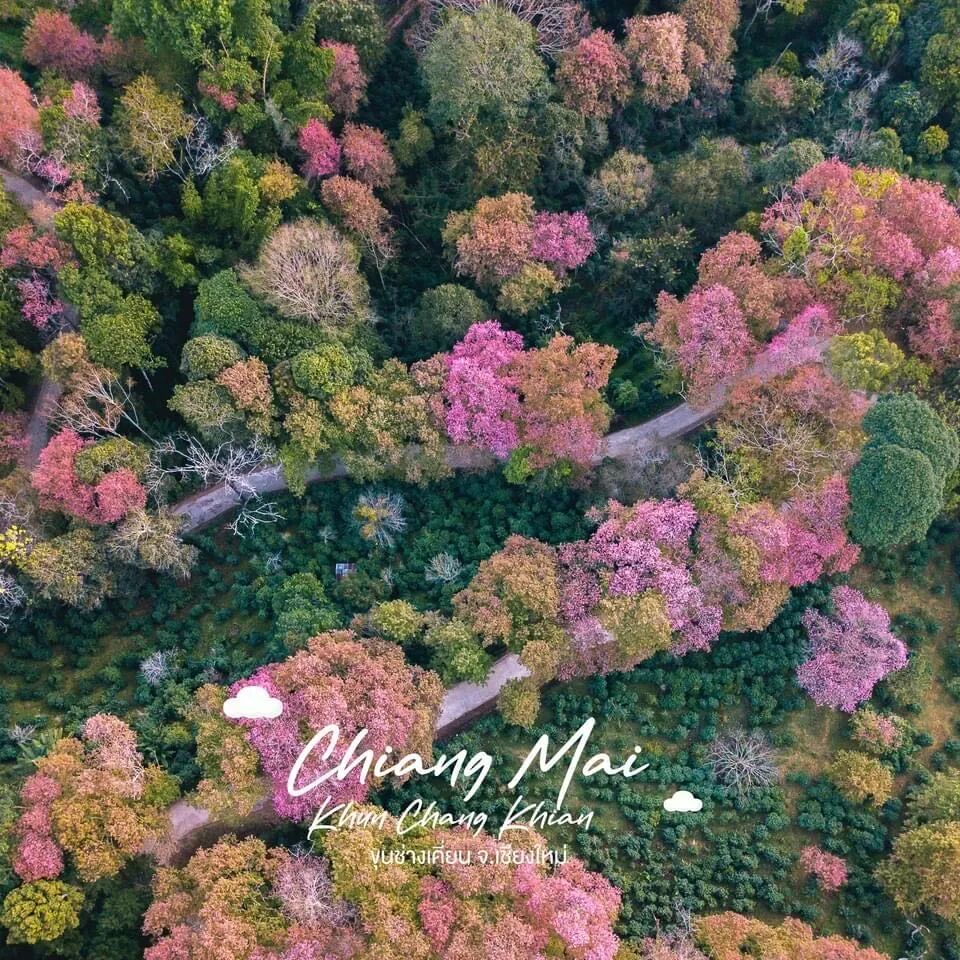 每个府的名字下面都标注了当地最有凉季特色的景点。比如清迈的安康山,樱花绽放。