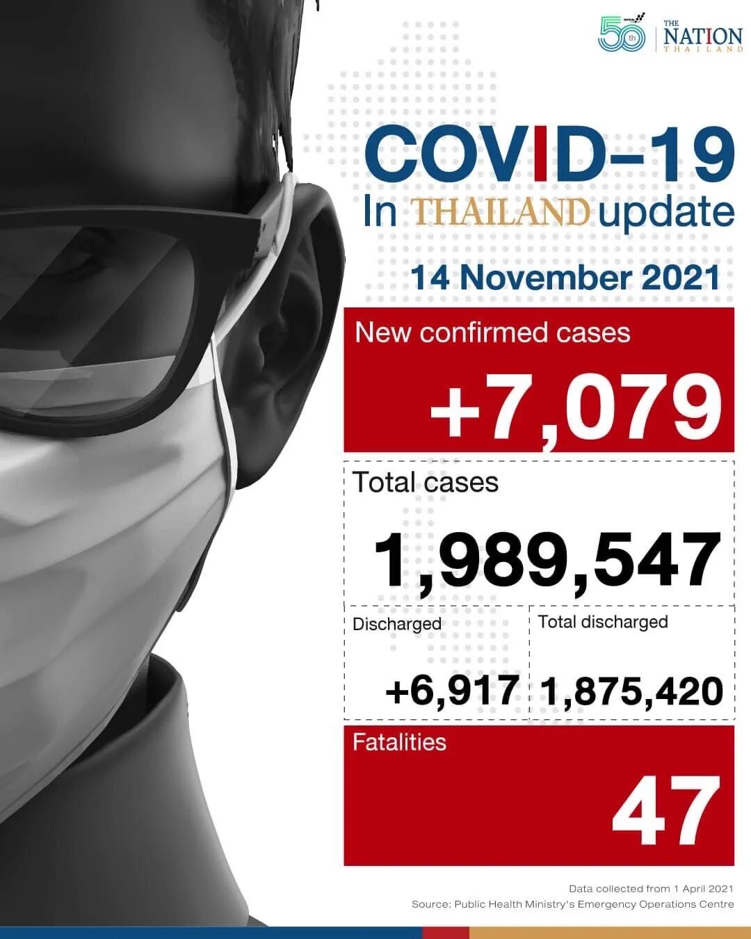 目前泰国共有7079例新确诊,其中171位病人来自监狱,死亡人数47人。