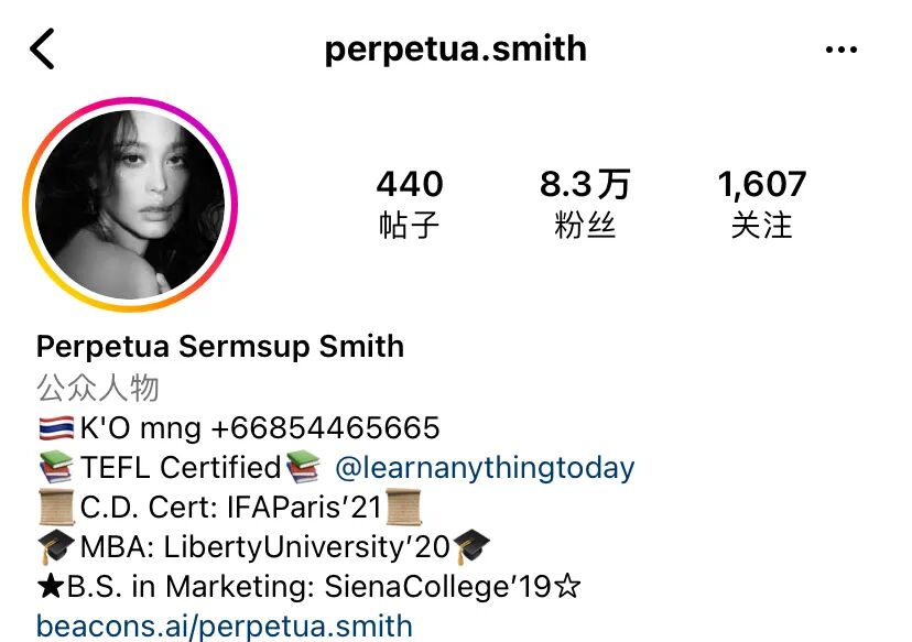 她在INS简介里的自我介绍,透露着满满的学识型学霸气息啊。本科、硕士在欧洲搞定,现在即将赴美读博。