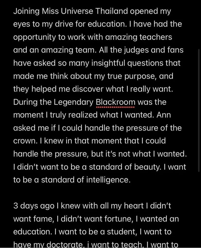 妹子是媒体猜测的前5强之一,论外形和气质,冲顶冠军不是不可能。但由于想继续深造,她选择了退出。