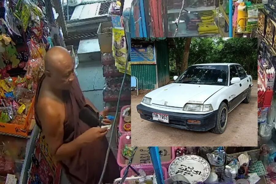 偷车贼是个僧人,名叫Moo,被偷走的二手车市值2万泰铢。