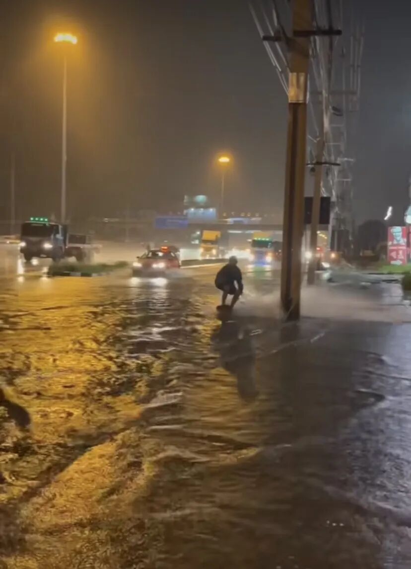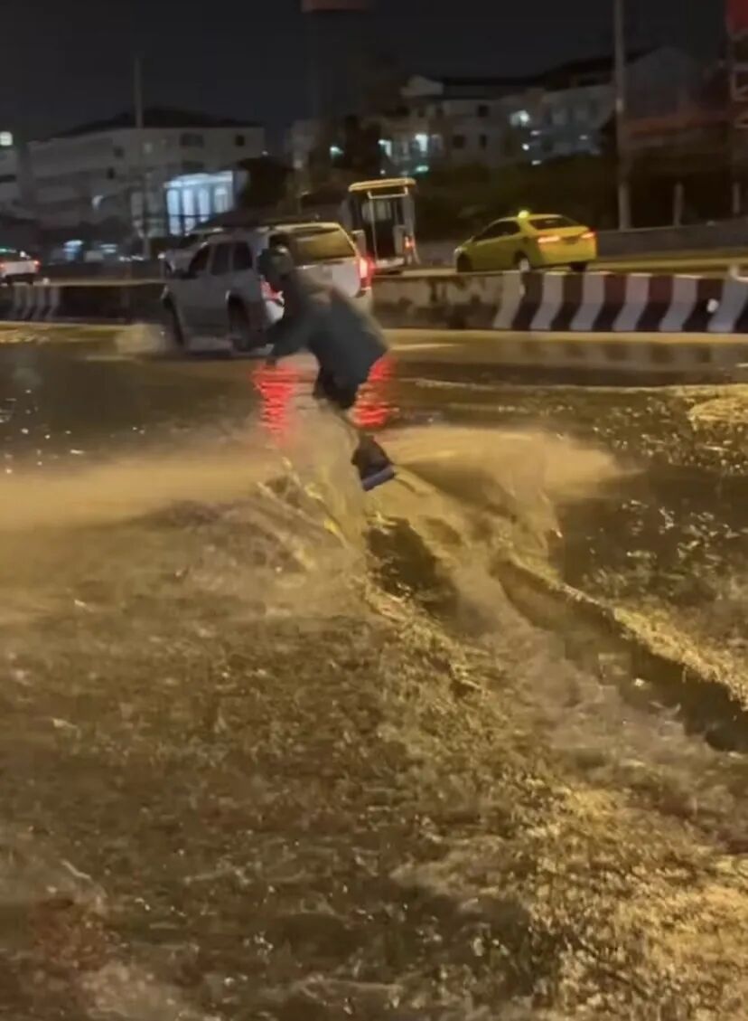 当下正值泰国雨季,泰国多府连日暴雨造成大面积严重积水。而这位因街头冲浪被罚款的男孩颇有天赋。
