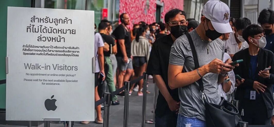 下图为排队购新机的曼谷人民。