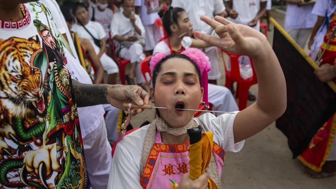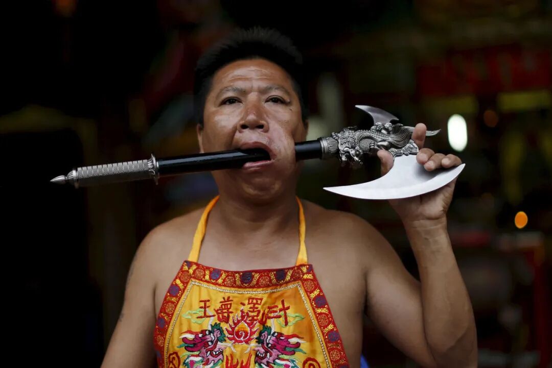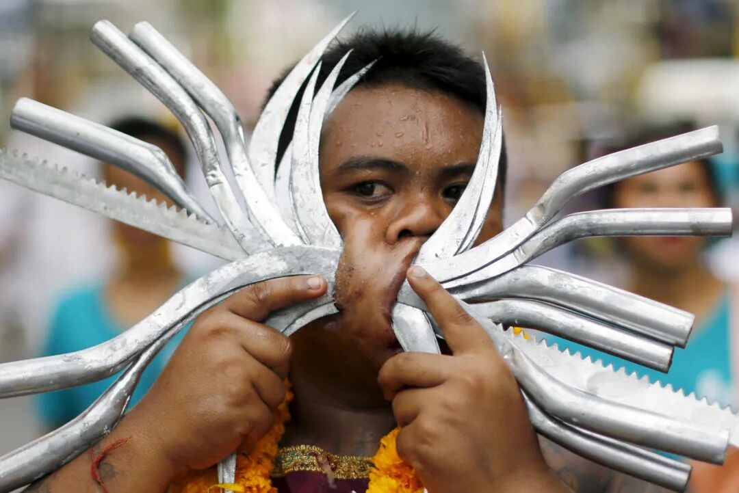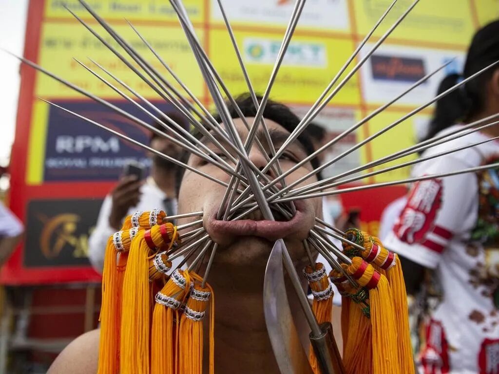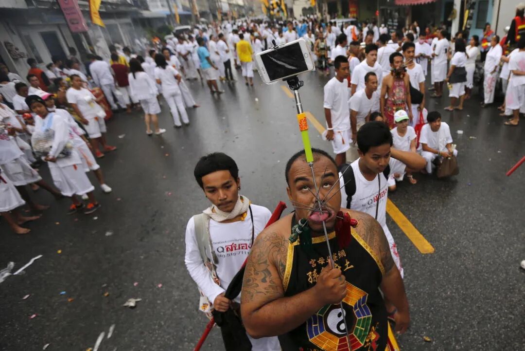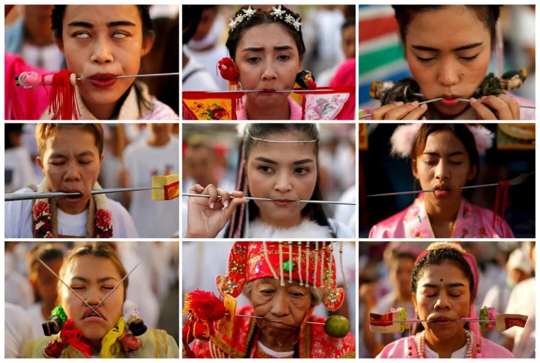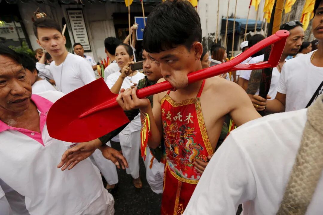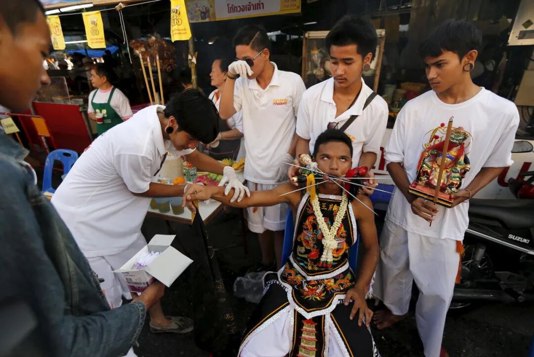 奇形怪状、五花八门的刺面行为是泰国九皇斋节最有看头的组成部分。泰国、缅甸、新加坡、马来西亚的华人们认为,在农历九月,禁食肉类有助于身体健康和净化心灵。
