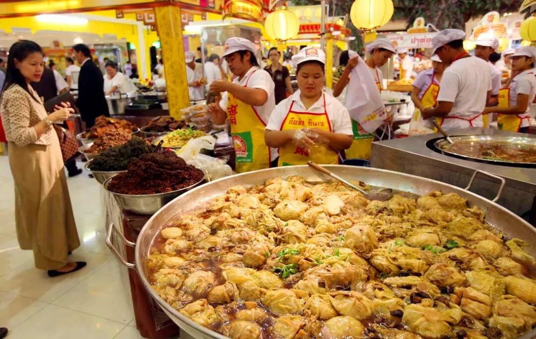前面说到普吉岛是九皇斋节的核心举办地,但是不代表其他地方就不过了。比如清迈,每年的这个时候在CENTRAL商场美食中心都会堆满了素食小吃。