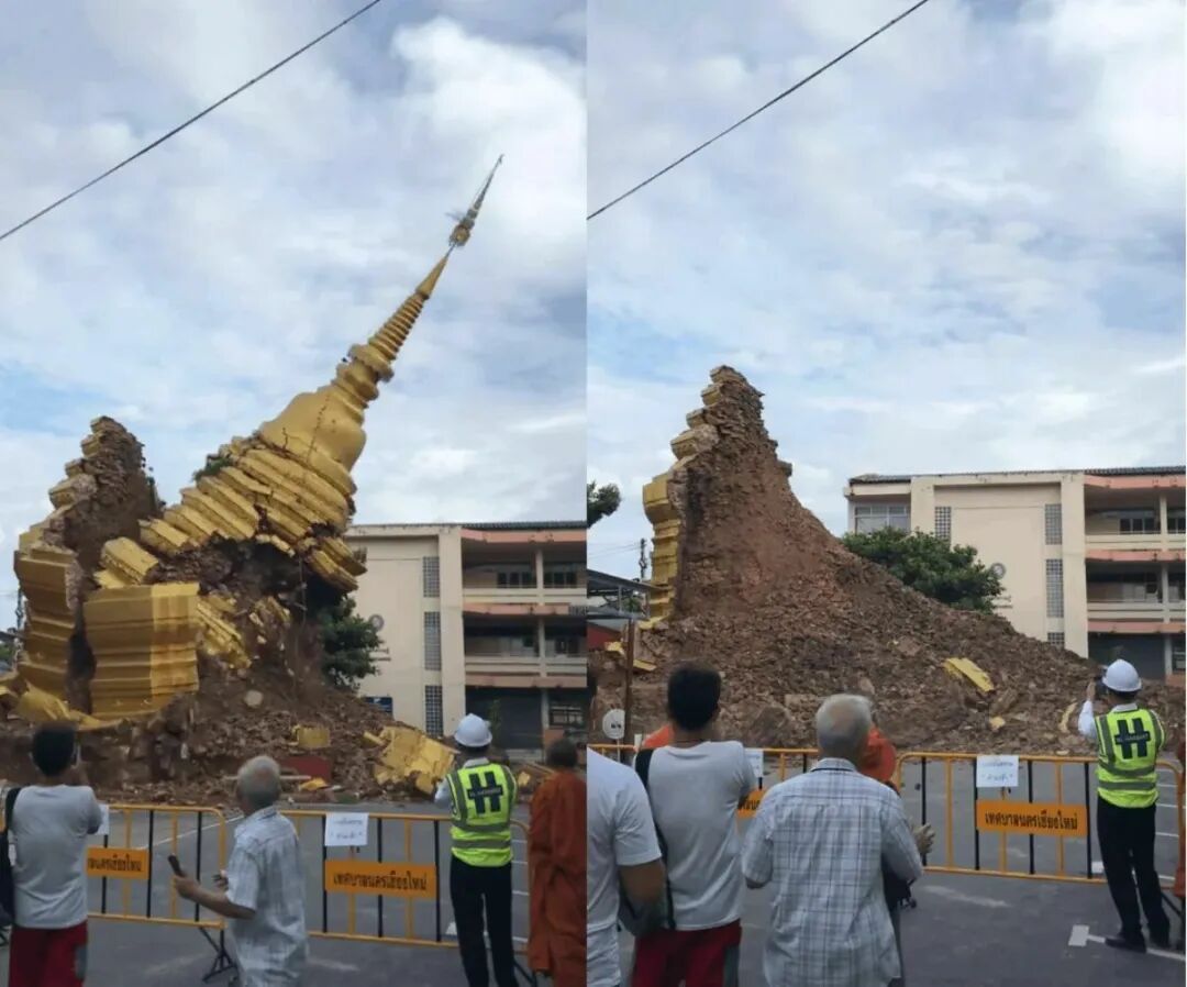 塌掉的古城门还没修复好,昨天清迈又有一个百年名胜古迹塌了。