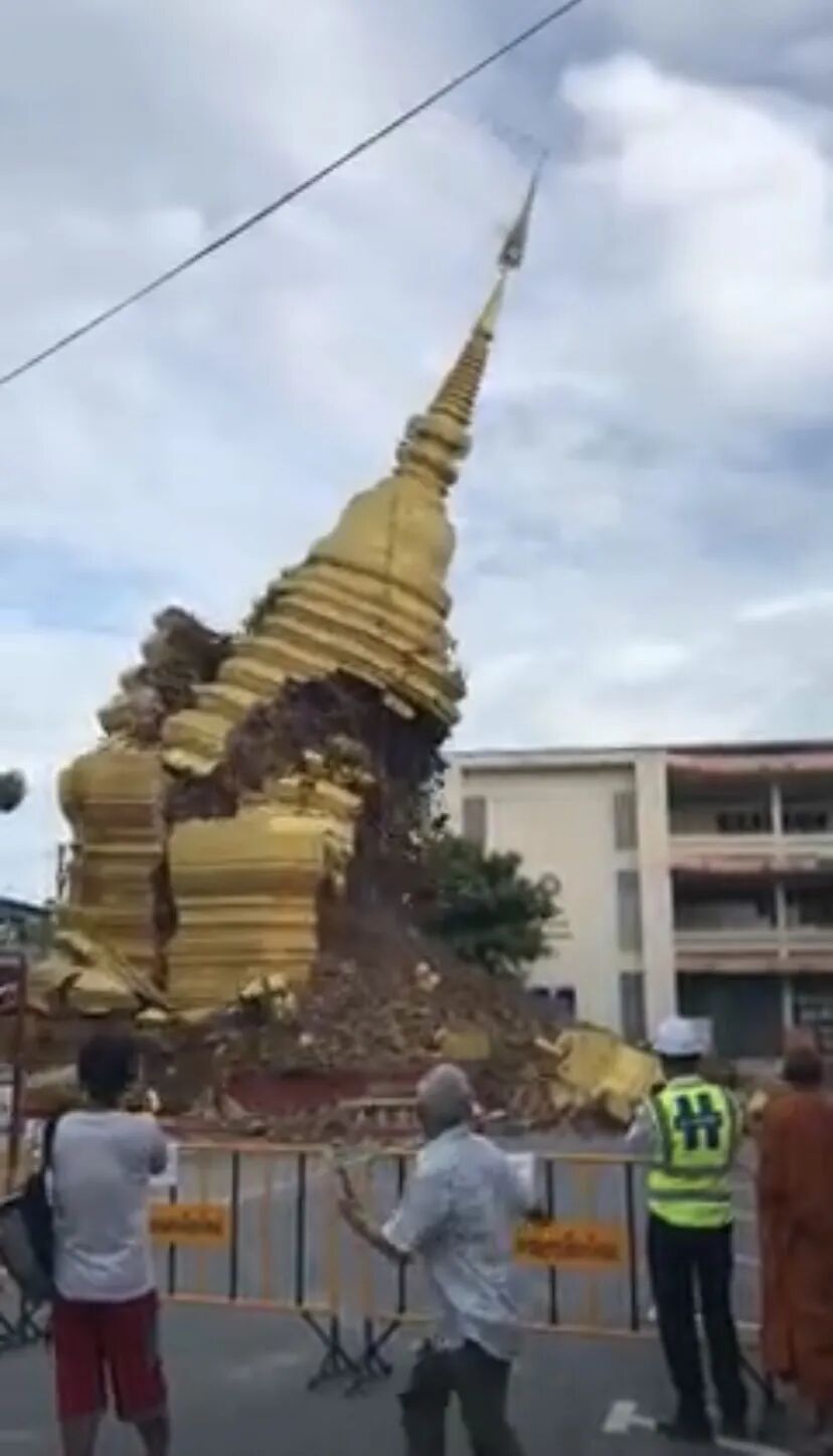 事情发生在清迈的Wat Si Suphan(西素攀古寺)。昨日下午5点左右,已有500多年历史的佛塔突然倒塌,索性没有人受伤。