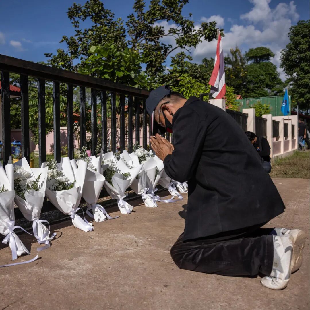 这起震惊世界的托儿所屠杀案发生第二日,即10月7日,泰国政府大楼降半旗致哀,全国各地的人民身穿黑衣共同缅怀逝去的生命。