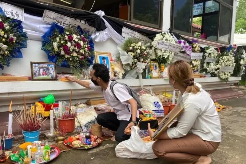 由于上周发生的托儿所屠杀案引起了全泰国人民乃至世界的关注,在泰国国王的赞助下,全国范围共有3个寺庙为孩子们举行了祈福和火化仪式。