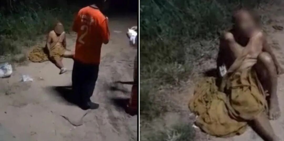 本周一,泰国东北部孔敬府警方在路边抓到了一名半裸和醉酒的僧人。