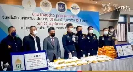 目前这两名毒品走私犯已被泰国警方控制,警方预计这两份毒品若成功流入社会,其总价值大约为9500万泰铢。