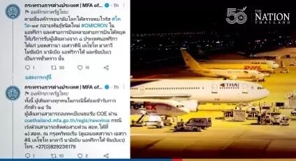 本周一,泰国外交部通过其Twitter官方账号宣布,滞留在博茨瓦纳、斯威士兰、莱索托、马拉维、莫桑比克、纳米比亚、南非、津巴布韦的泰国公民可以从12月1日起注册COE(入境证书)返回泰国。