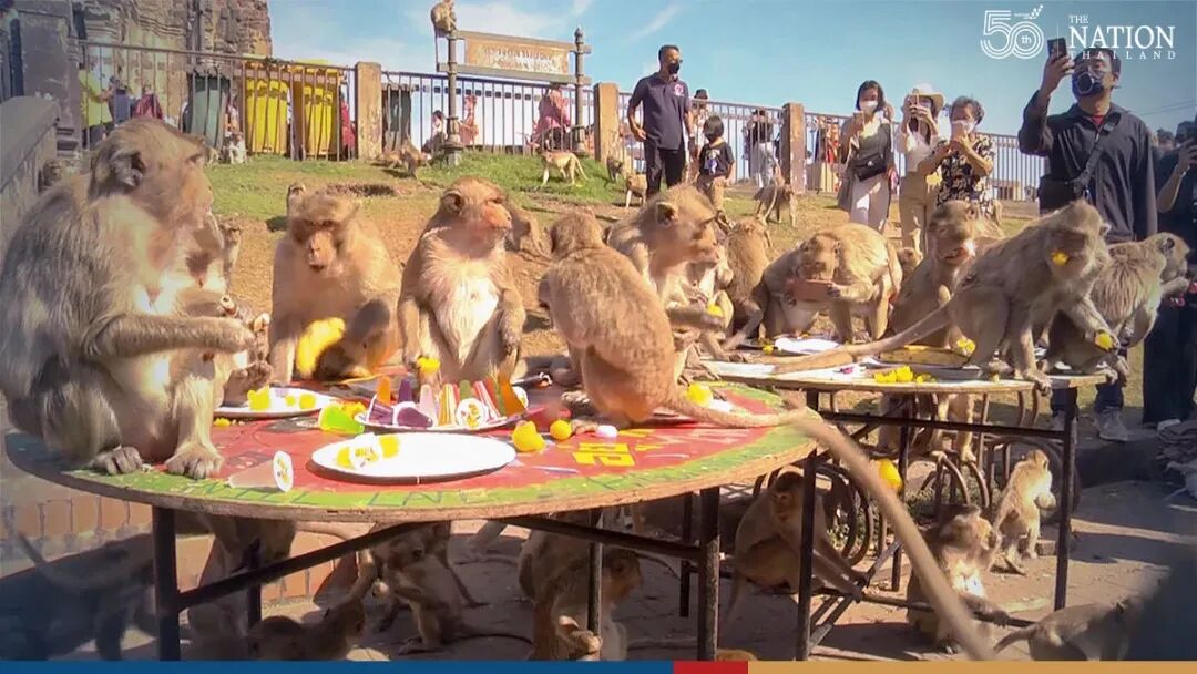 这是泰国华富里府第33届猴子自助餐节,如果不是受疫情影响,当地政府举办的排场应该还会再大一些。