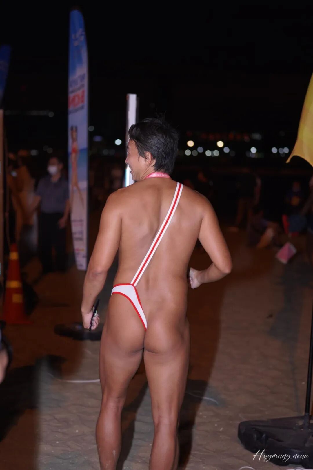 但其实整个沙滩上最闪瞎人眼的还是这位大哥的造型!这真真是鸟基尼啊!我羞涩了!