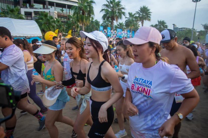 上周六,3000多位身穿比基尼和奇装异服的运动爱好者齐聚芭堤雅海滩,参加了一场性感的跑步比赛。
