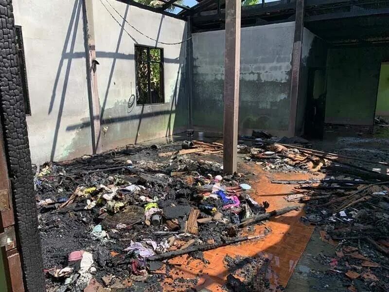 他在来到托儿所晃荡之前,在家用棍子击打了自己的老母亲,并且用一把火烧了自己的家!