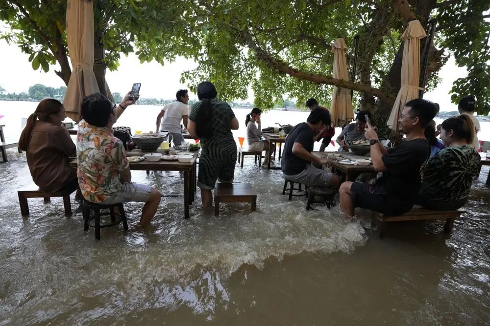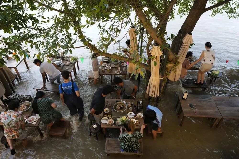 近日,泰国暖武里府的河边餐厅Chaopraya Antique Cafe就充分发挥了洪水的“良性作用”,利用清奇的脑回路为自家馆子招揽了不少新生意——近来每天一到下午和晚上这里就挤满了人。