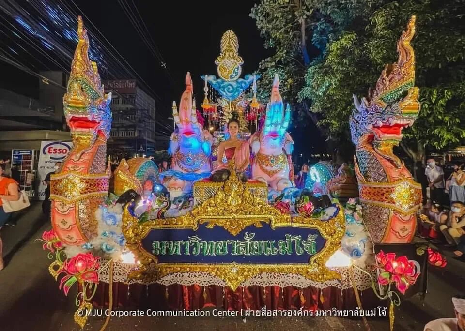 清迈MAE JO大学的花车获得花车展的最佳奖。他们的花车造型如下: