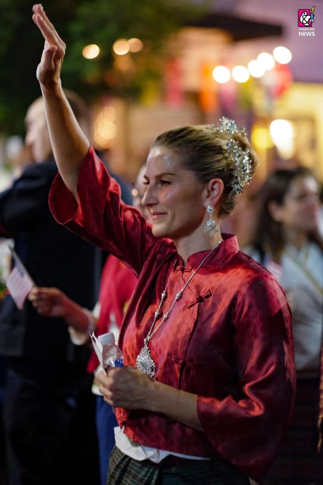 以下花车分别来自清迈市政厅、美国驻清迈总领事馆、韩国领事馆、中国领事馆。