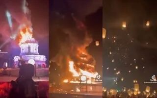 今年水灯节期间就有天灯把清迈SAN PA TONG区某寺庙宝塔给烧了。天灯落在宝塔上,造成了火灾。所幸无人伤亡。