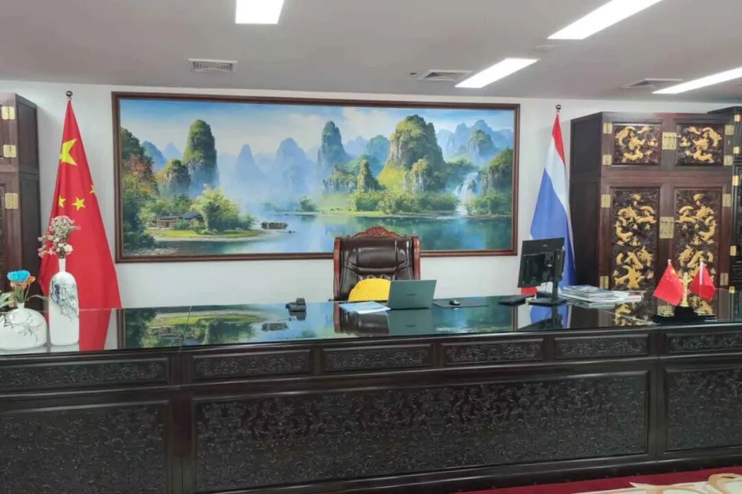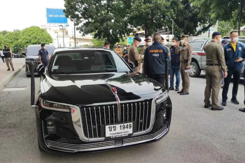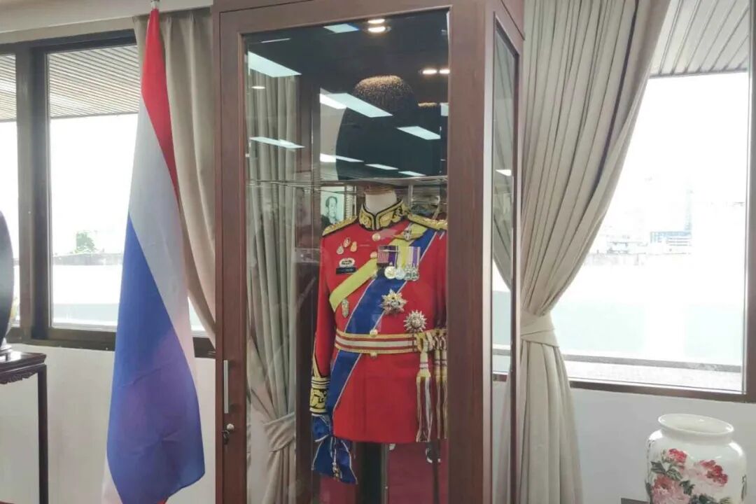 豪宅一共有4栋建筑,警察在里面发现了一辆中国制造,引擎盖上装饰着国旗的豪华轿车、一辆宝马警用护航摩托车,以及一套印有嫌疑人名字的泰国全套军装。