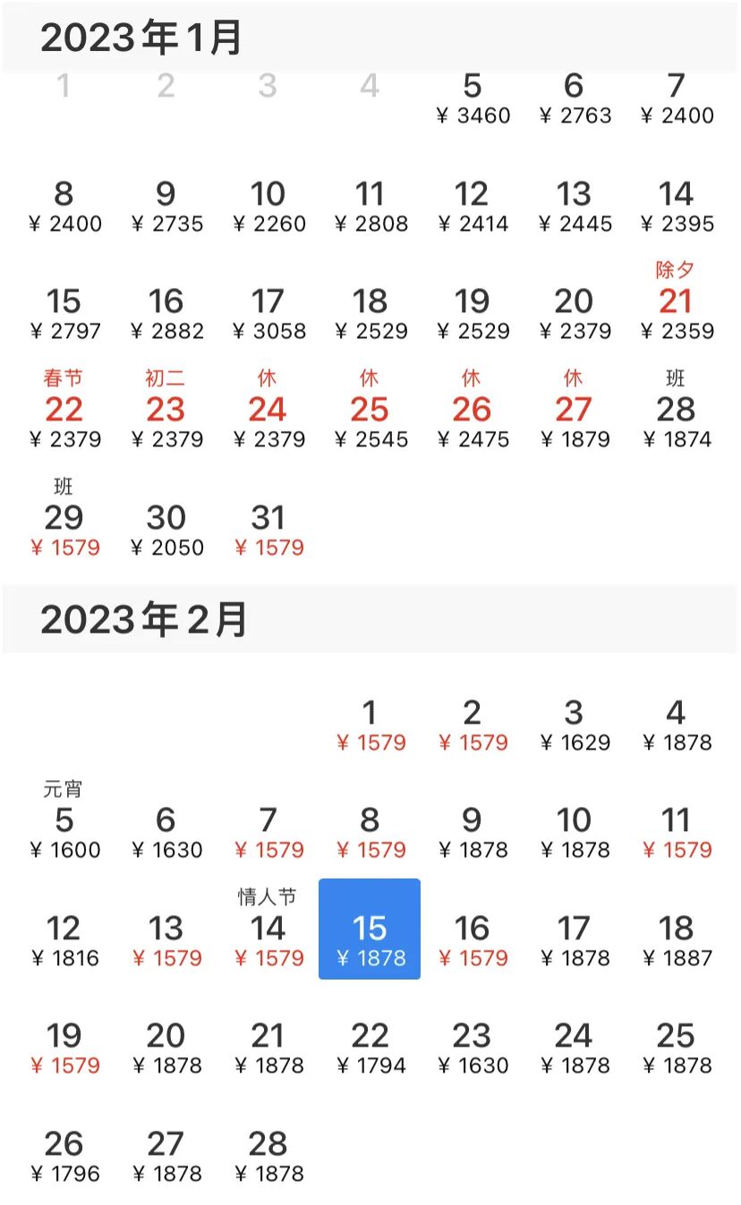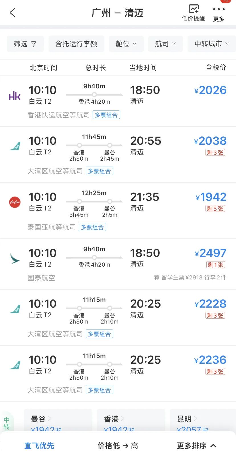 广州飞清迈的航班,2月的机票开始有正常化的趋势: