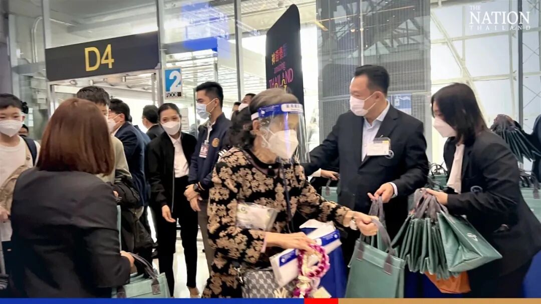 他们正是泰国收紧入境政策后第一批抵达泰国的中国游客。为迎接中国游客回归,泰国共有3位部长前来机场迎接。(公共卫生部长、交通部长、旅游和体育部长)