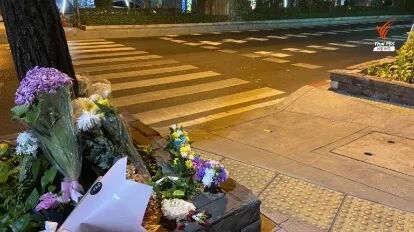 网友在斑马线旁摆放鲜花表示哀悼
