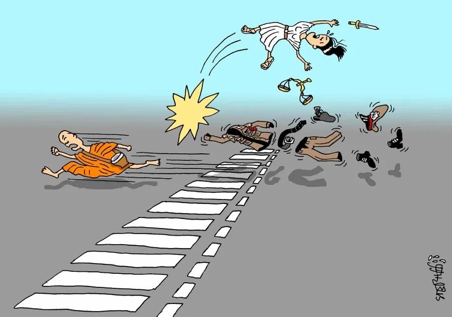下图为女医生被撞死事件后,泰国网友制作的讽刺漫画: