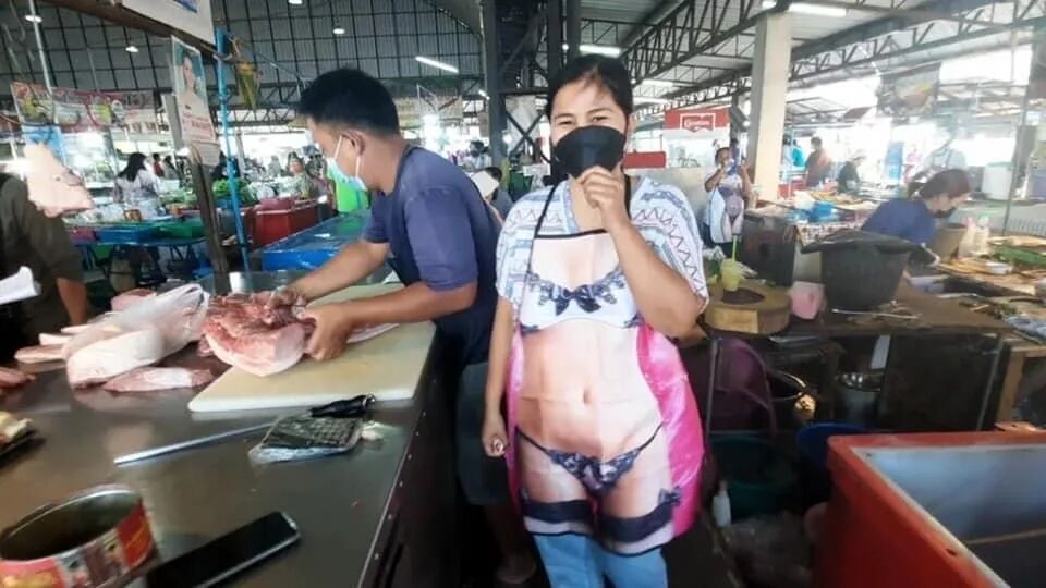 这不,乌冬塔尼府某菜市的肉摊贩模仿起了“以乳卖乳”销售法的清迈小姐姐,决定用“火辣的肉体”诱惑顾客增加收入。