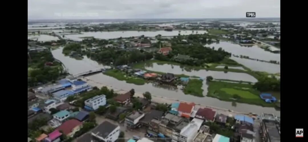 下图为呵叻府水灾航拍视频截图,资料来自YOUTUBE@Associated Press