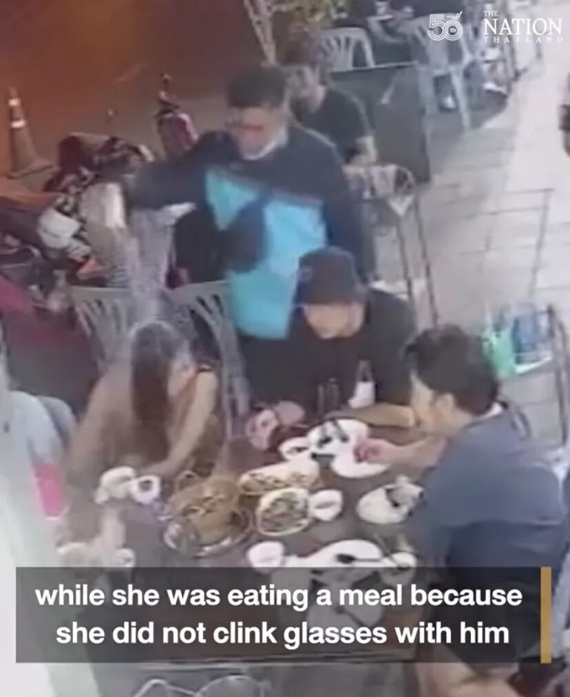 事发在曼谷辉煌区,美女和朋友坐在路边吃饭,结果有个男的往她头上倒了一瓶啤酒!(呵呵,这操作换谁能忍?!)