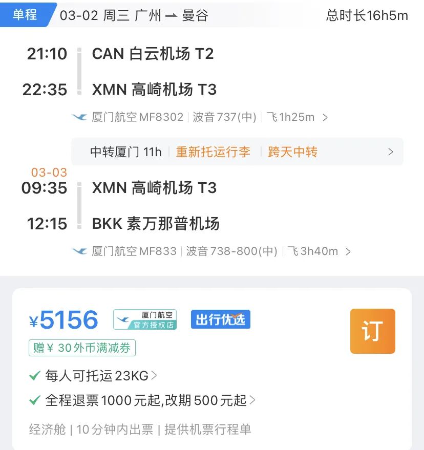我拿3月2日广州飞曼谷举例,新冠前的价格一般在2000元以下且是直飞,现在还要经历转机。。。