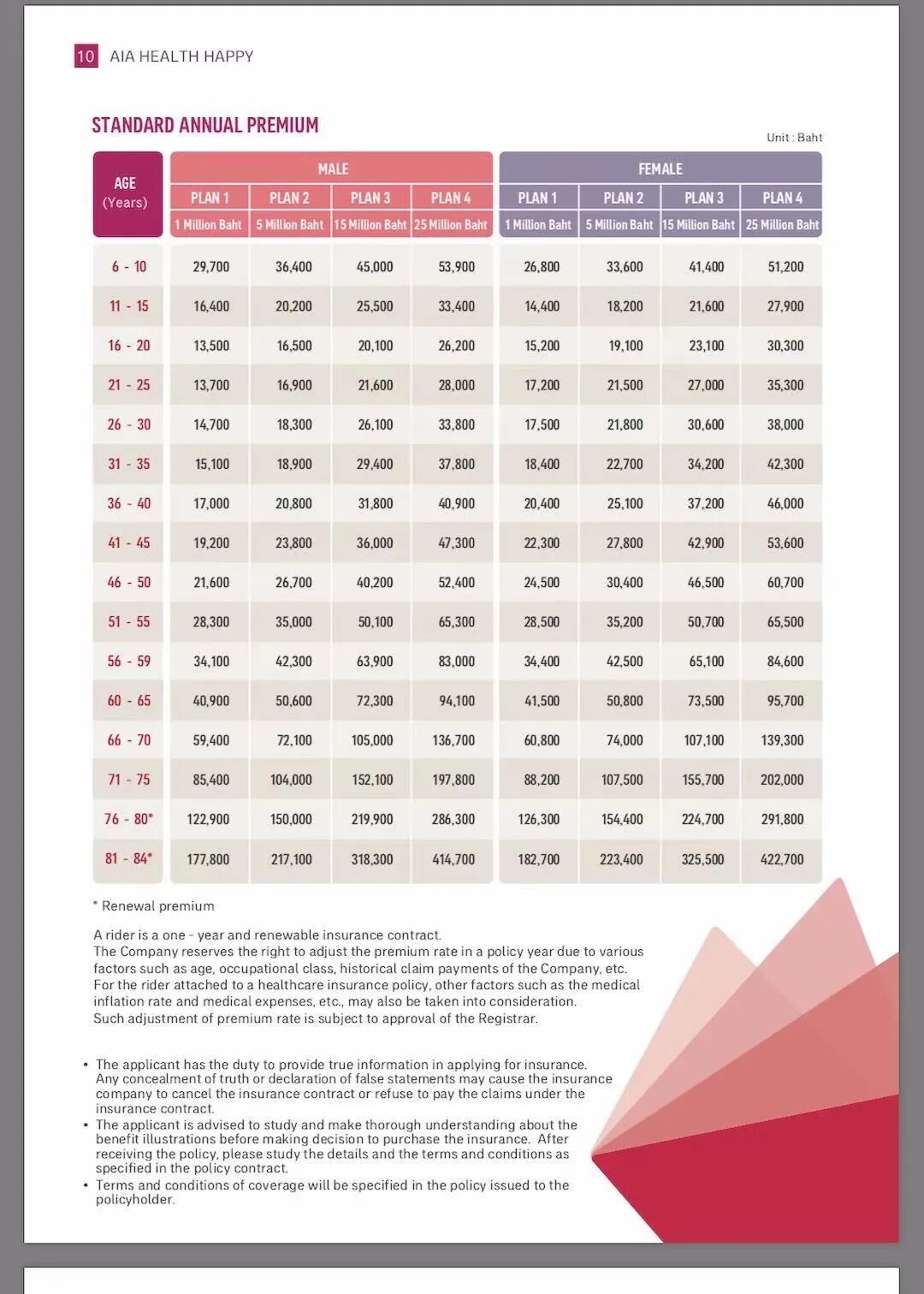以泰国最有名的AIA保险公司的保单为例——它家还没有紧跟政策推出300万泰铢档。
