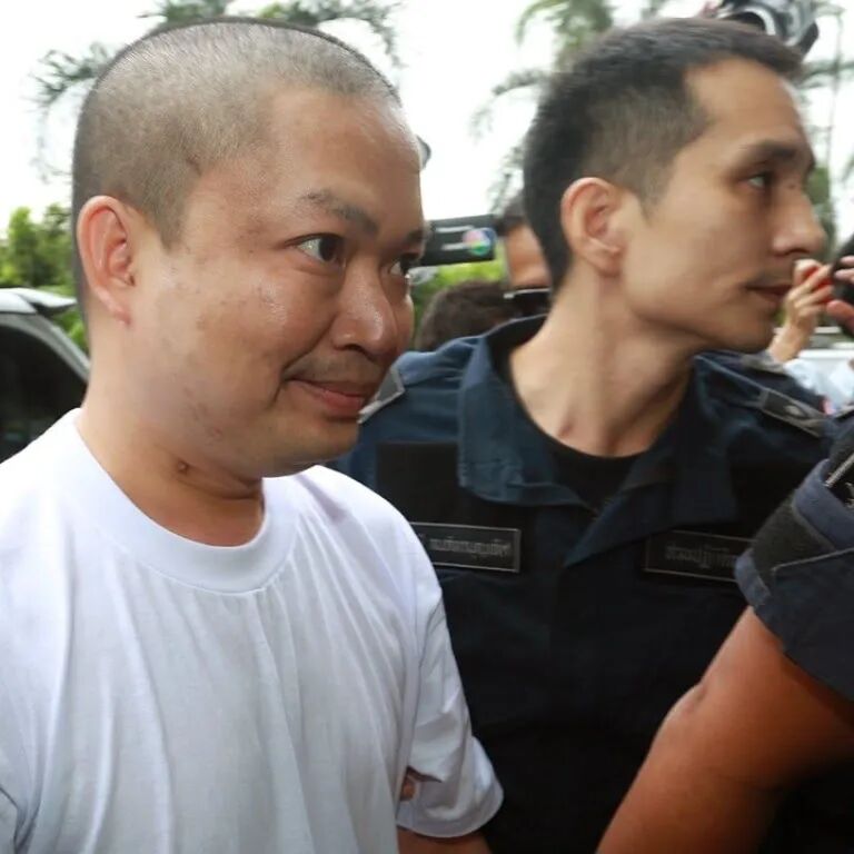 东窗事发后他曾逃亡美国,结果于2016年在加利福尼亚州被捕,之后法院下令将他引渡回泰国受审,他却很厚脸皮地在法庭上与律师抗争,死活不认罪。