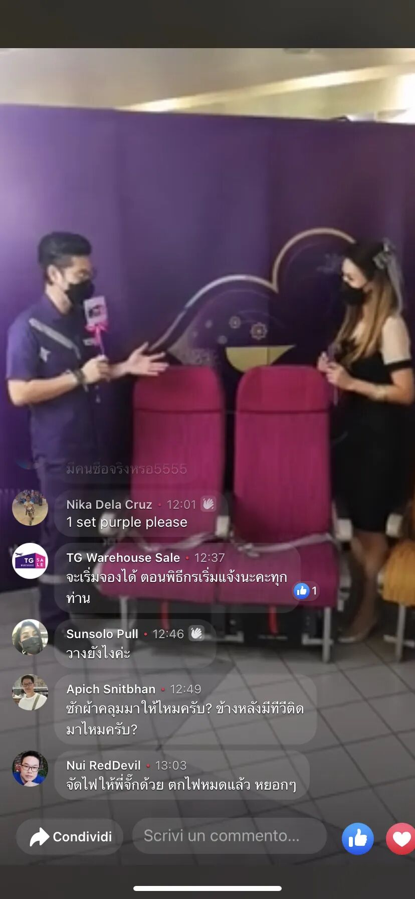 昨天,泰国航空(THAI AIRWAYS)宣布在其脸书网页(TG WAREHOUSE)上进行直播拍卖,卖的不是小吃或机票,而是飞机座椅……