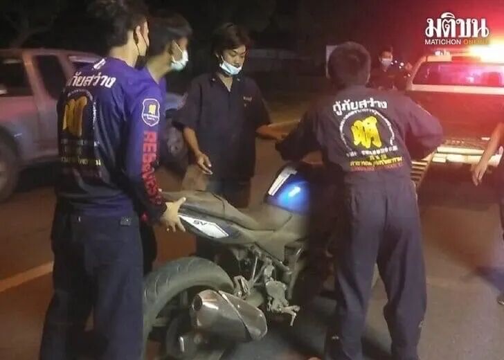 新闻来源泰国媒体KHAOSOD,这起严重车祸发生在周一晚上的曼谷,一位摩托车骑手被甩到了距离摩托车200米处的地方,尸体被分成了两段。