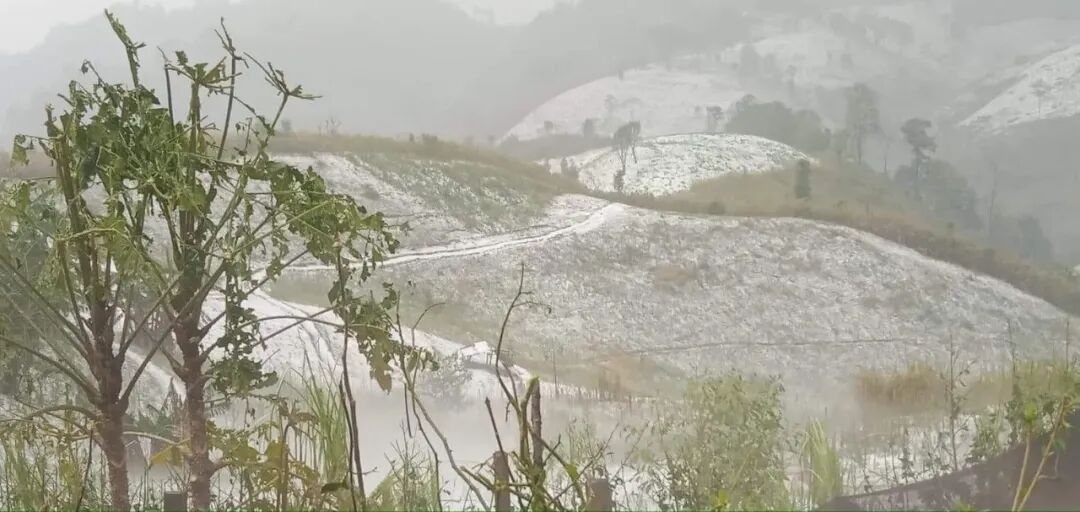4月17日,夜丰颂府拜县警察局接到民众电话,称周围多地刮起了大风下起了冰雹。这个冰雹下得可不小啊,直接盖满了整个山头,望过去谁敢相信这是泰国啊?