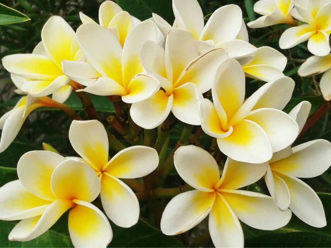 鸡蛋花(Frangipani)有粉+黄,黄+白几种色号,由于中间像蛋黄四周像蛋白被叫做鸡蛋花。虽然现在这种花很常见,多出现在游客的耳朵上或鸡尾酒杯边,但你很难看到泰国老人对它爱不释手。