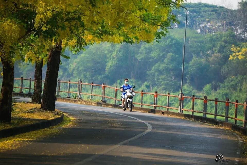 今早特地翻出了2020年4月在清迈随手拍的夕阳图和金链花图,个人认为挺能代表此时此刻清迈的时令特色——你看!街边下起了黄色的花雨!