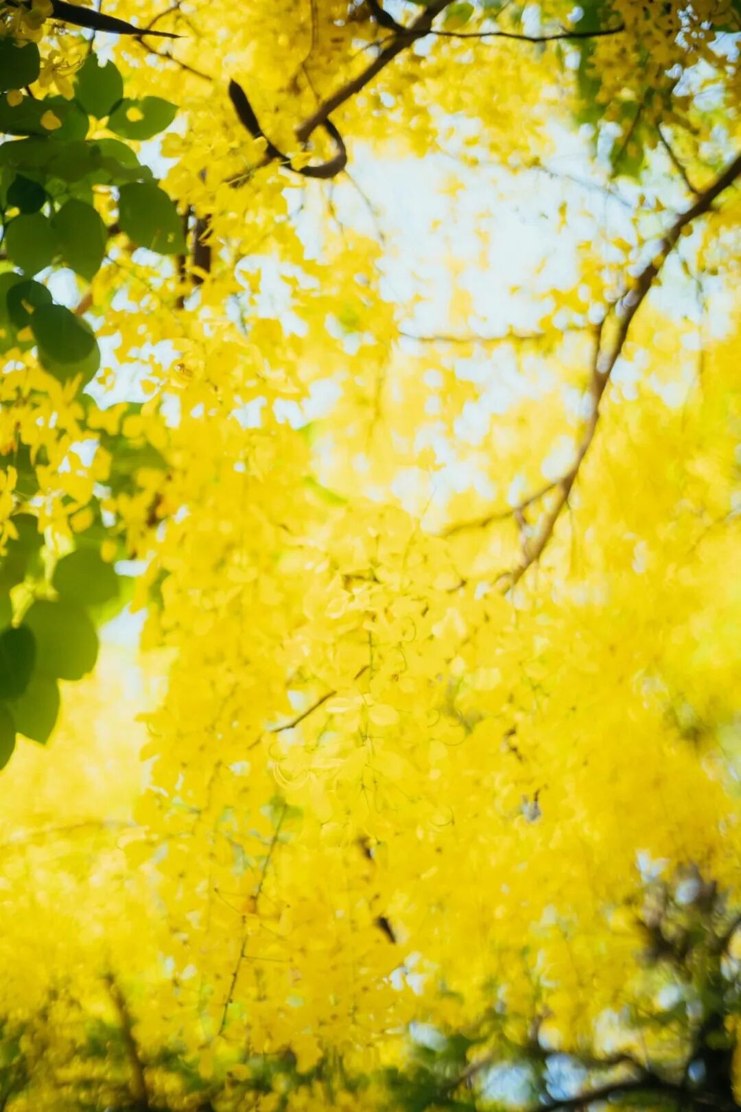 金链花盛放的时段为2月到5月,每当凉季结束时,花就会悄然绽放。刚好3月-5月是泰国最热最闷的日子,它反而还开得如此勇猛。