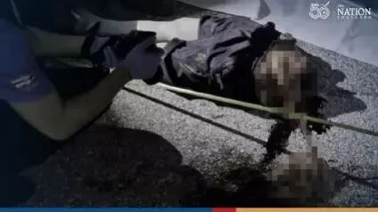 停在一旁的是一架小型飞机,型号是Cirrus SR22T, 其前螺旋桨、右机翼和左后轮都受到了损坏。49岁的飞行员说,他们的飞机从曼谷廊曼机场起飞,在肇事机场降落时撞到了死者,造成了他的死亡。据悉,当时死者正在跑道上锻炼。